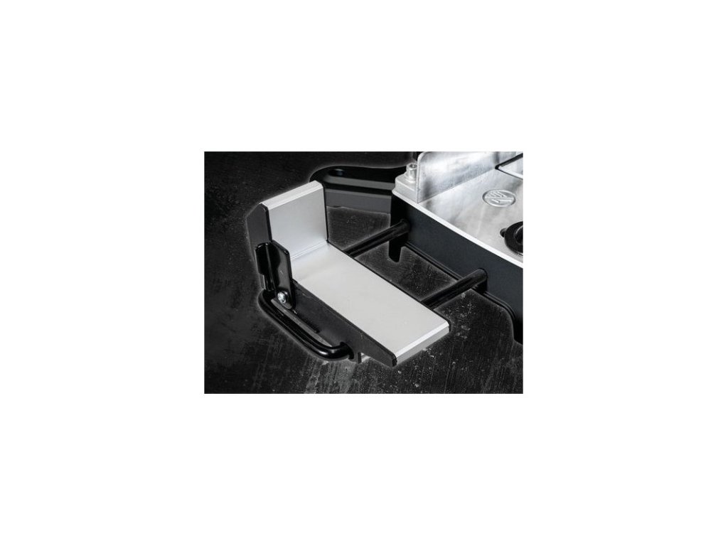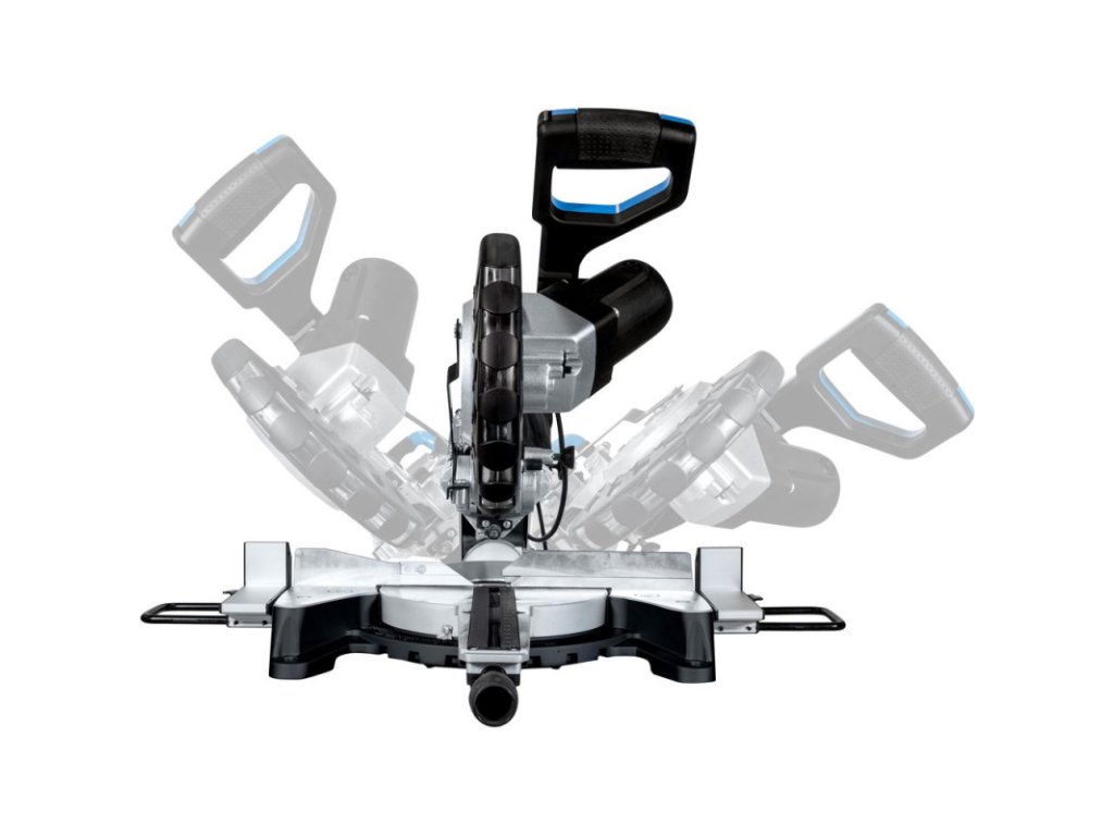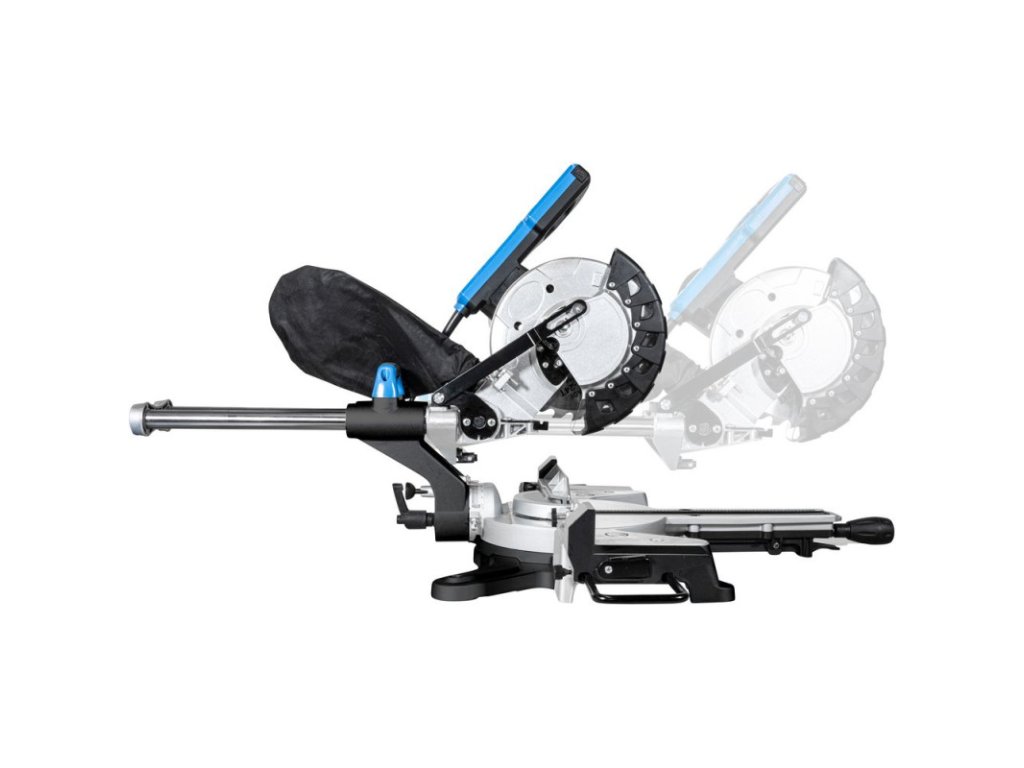 Radiálna kapovacia píla s plynule, obojstranne otočnou pílovou hlavou. Radiálne vedenie uložené v guľôčkových ložiskách, laser, svorka na uchytenie obrobku, široký pracovný stôl, vysoký hliníkový doraz, vrecko na zachytávanie triesok na zníženie tvorby prachu pri rezaní. Prípojka na odsávacie zariadenie.