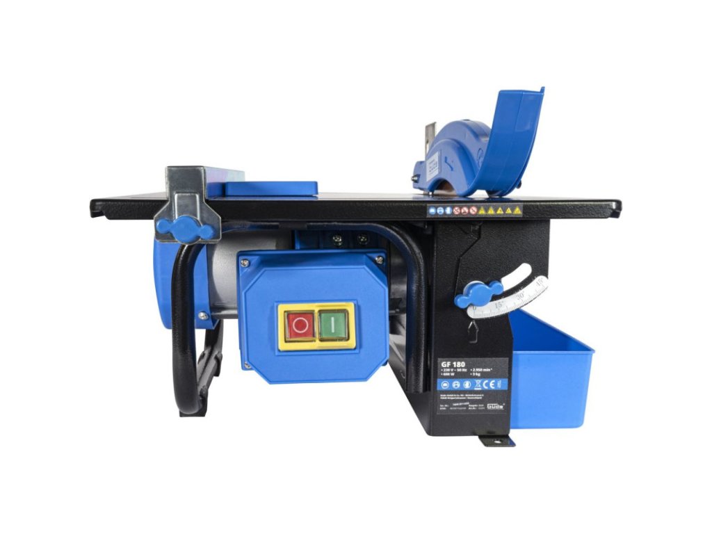 Rezačka dlaždíc GF 180 zaujme svojou kompaktnosťou a funkčnosťou. Diagonálne meradlo rezu, paralelné zastavenie, vložené váhy, ktoré sú integrované do stola. Výkonný indukčný motor, integrovaný prúdový chránič. Diamantový rezací kotúč Ø 180 mm. Rezanie dlaždíc do hrúbky 34 mm (poloha rezu 90°).