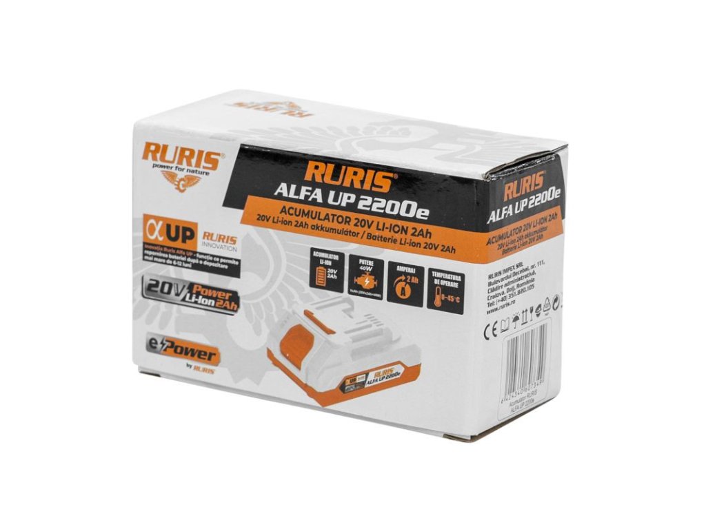 Batéria RURIS Alfa UP 2200e má napätie 20V a kapacitu 2Ah. Produkt je dodávaný s dobrou autonómiou, ľahko sa pripája k celému radu zariadení RURIS na batérie.