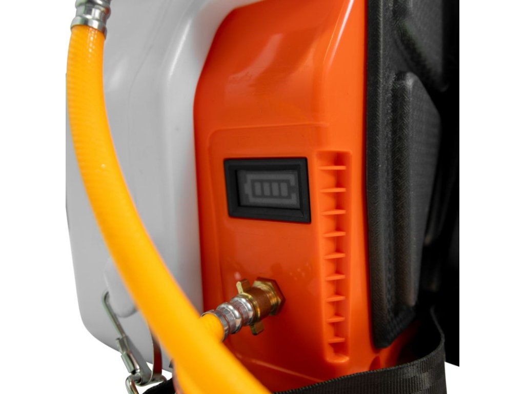 Zariadenie je vybavené LED displejom, ktorý zobrazuje dôležité informácie o stave nabitia batérie a prevádzke postrekovača. Tento prvok poskytuje používateľovi bezpečnosť a kontrolu počas celého používania.
