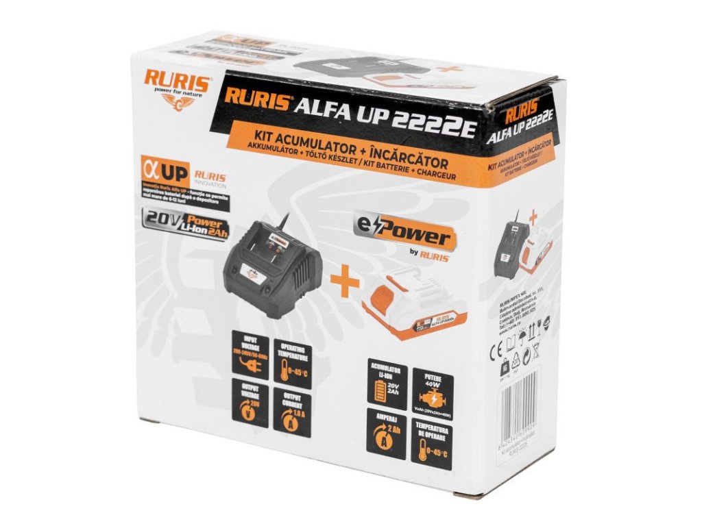 Súprava batérie + nabíjačky RURIS Alfa Up 2222e tiež prichádza s technológiou Alfa Up Innovation, ktorá má prostredníctvom elektrických impulzov schopnosť reštartovať batériu, keď je úplne vybitá alebo skladovaná na dlhé obdobia 6-12 mesiacov.
