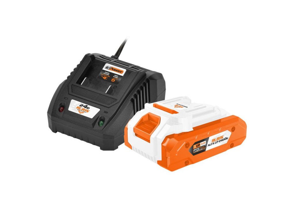 Sada batérií + nabíjačka RURIS Alfa UP 2424e má napätie 20V a kapacitu 4Ah.