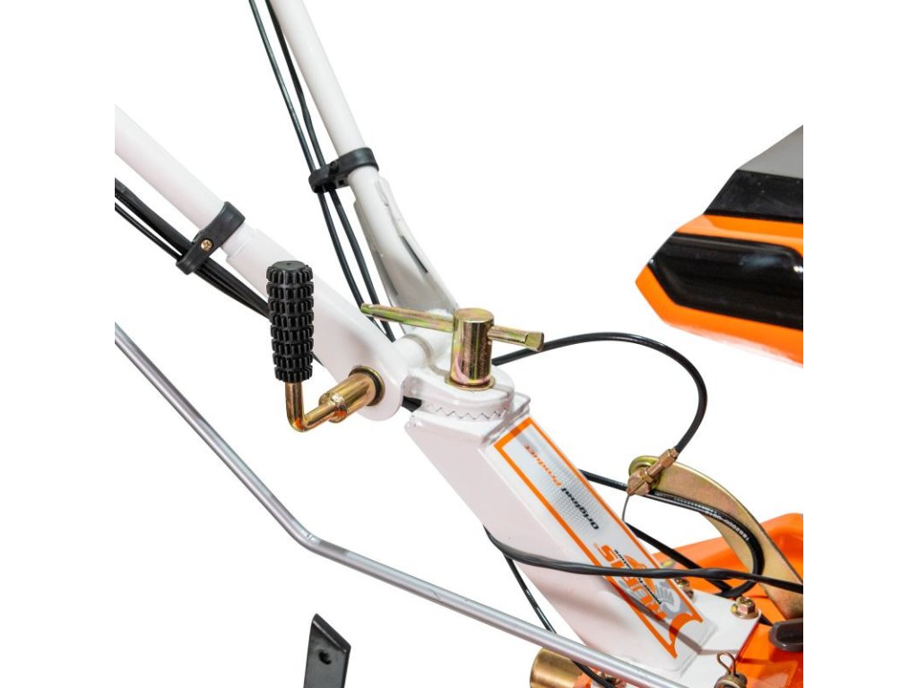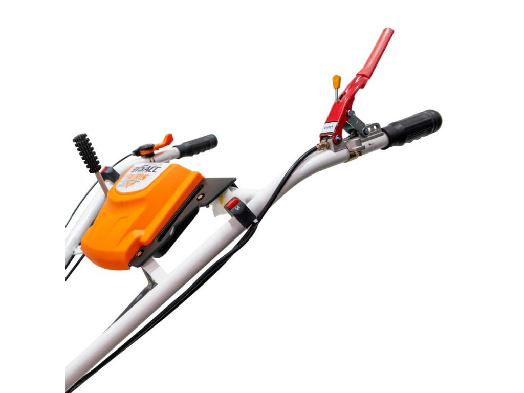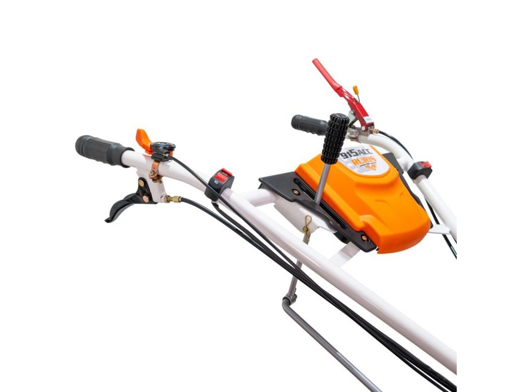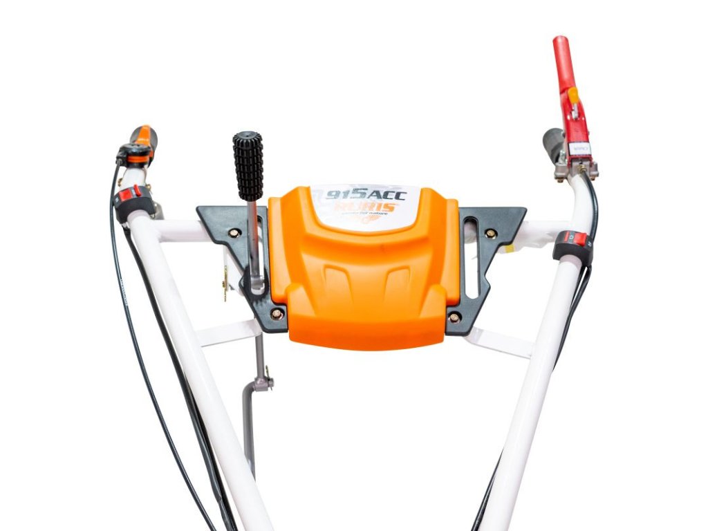 RURIS 915ACC , hoci váži 146 kg, sa dá ľahšie ovládať vďaka nahor nastaviteľným kovovým madlám a gumeným rukovätiam určeným na tlmenie vibrácií generovaných motorom.