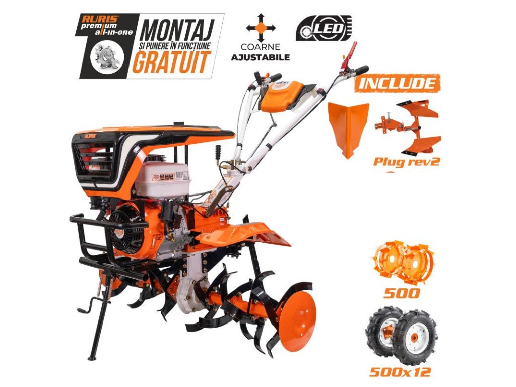 Profesionálny motorový kultivátor RURIS 915ACC umožňuje pripevnenie širokého sortimentu príslušenstva ako sú: protizávažia, jednoradličný pluh, brány, otočný pluh, vyorávač zemiakov, kultivátor, sejačka, kovové alebo gumené kolesá, príves...