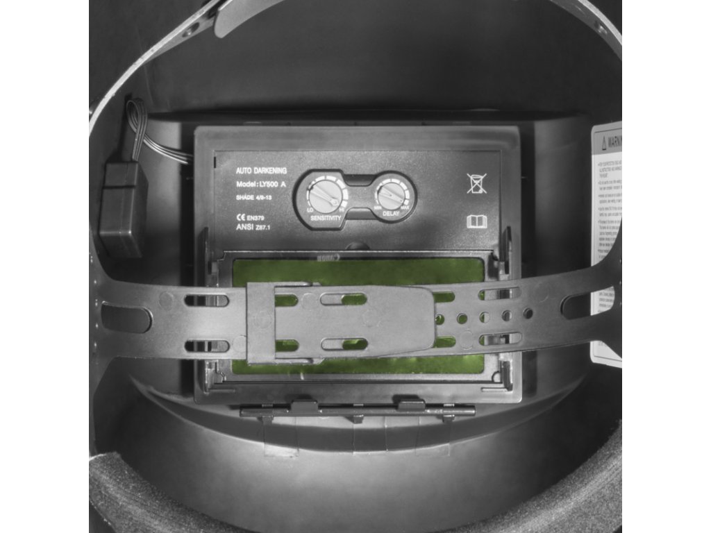 Helma odolná proti nárazu, plynulo nastaviteľný stupeň stmievania 9 – 13, plynulo nastaviteľná citlivosť filtra, plynulo nastaviteľná doba oneskorenia na jas, samostmievací filter (110 x 90 mm), nabíjanie solárnymi článkami, nastaviteľná výstužná páska na hlavu, čalúnená páska na čelo. Pravé farby (pre lepšiu viditeľnosť, bez farebného tieňovania).