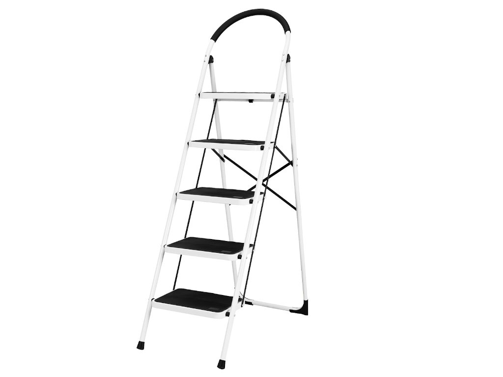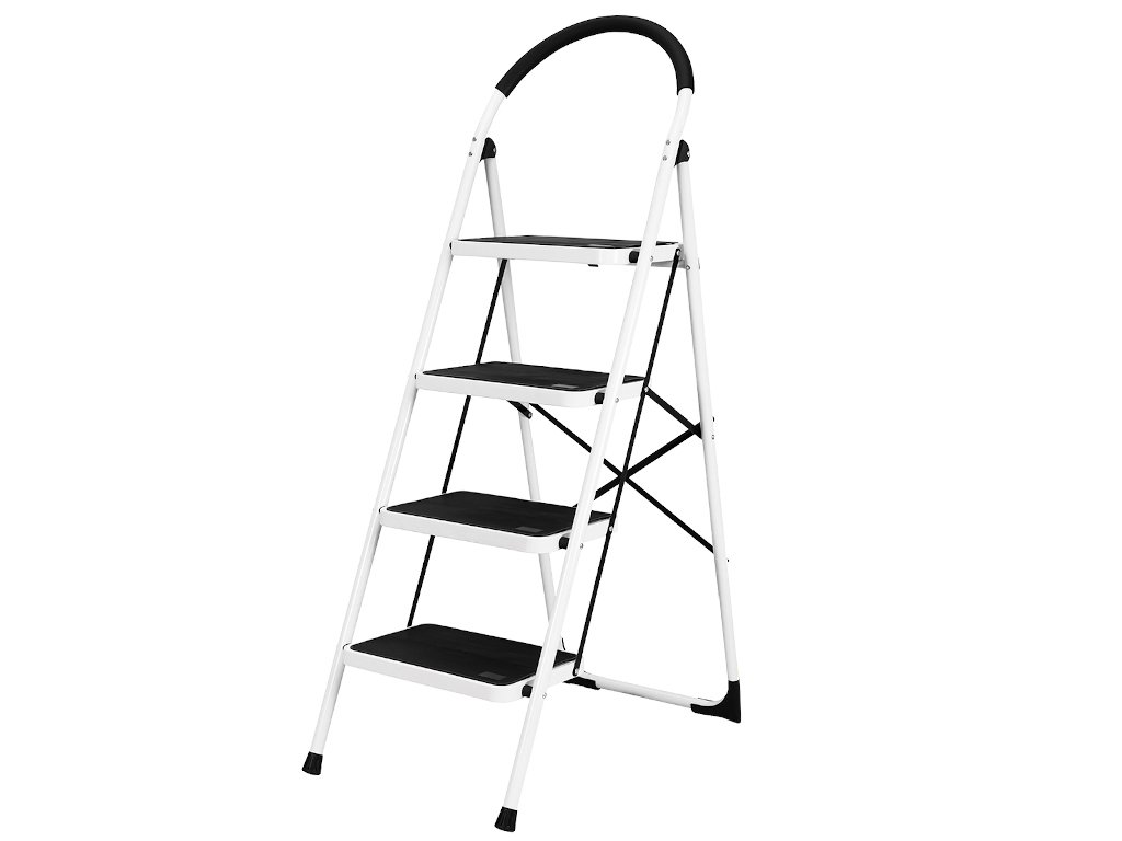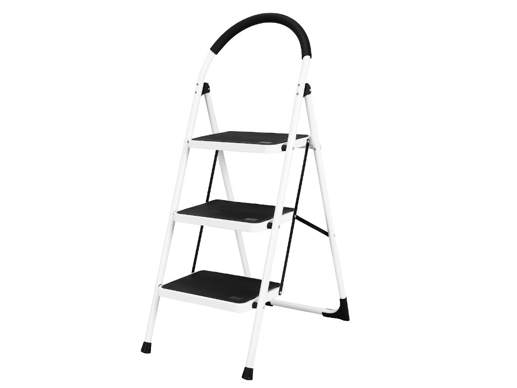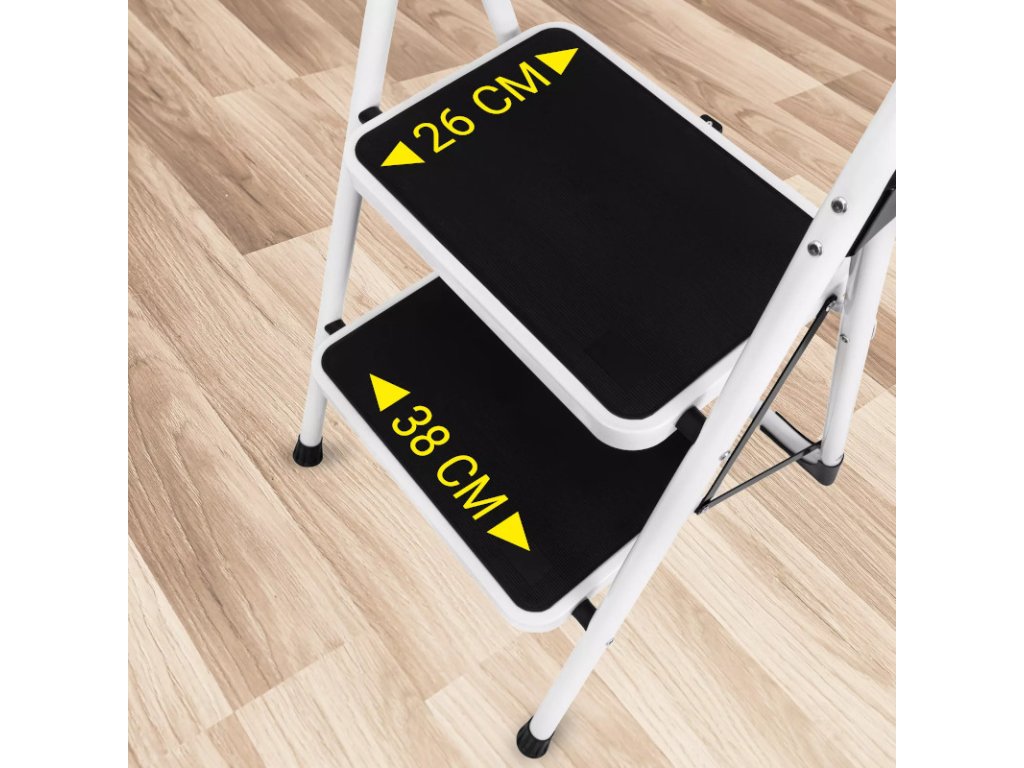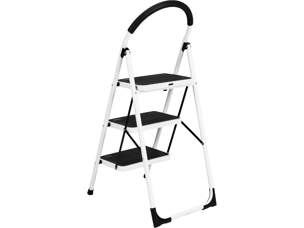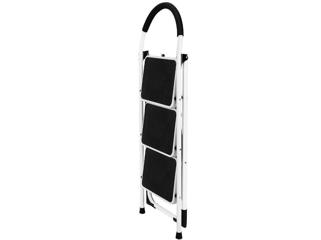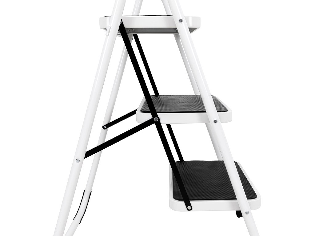 Rebrík prichádza v modernej kombinácii bielej a čiernej. Vďaka tomu je oveľa atraktívnejší ako bežné pracovné rebríky.