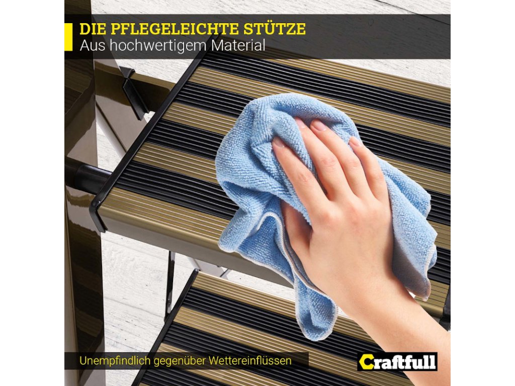 Vďaka kvalitnému hliníku je rebrík ľahký, môžete ho postaviť kedykoľvek a kdekoľvek. Navyše sa dá rýchlo vyčistiť a odolá daždivému počasiu. Praktický protišmykový nášľap, pogumovaná rukoväť a prídavné vzpery zaisťujú bezpečné postavenie. S 3-5 schodíkmi je tu tiež pre vás ten správny rebrík Craftfull na rôzne použitie!