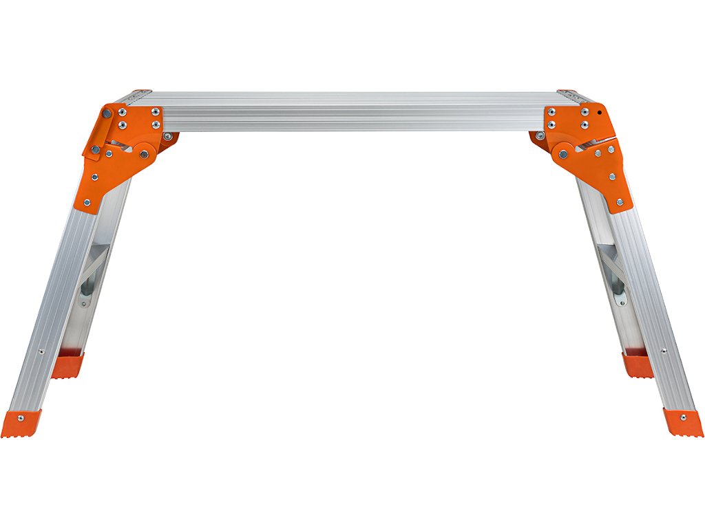 Na priestrannú plochu plošiny môžete umiestniť všetky druhy náradia. Bezpečnostná lišta zabraňuje náhodnému zloženiu a protišmykový nášľap a nožičky zaisťujú pevné postavenie. Prídavné vzpery zaisťujú dodatočnú stabilitu na pracovnej ploche.