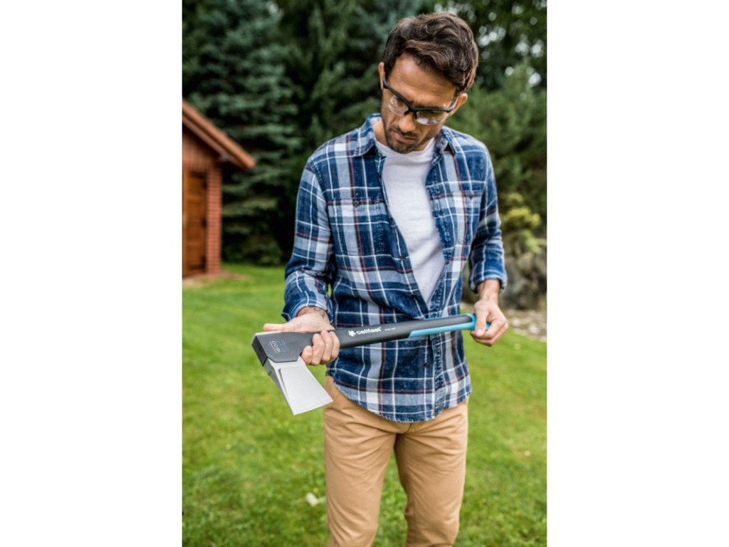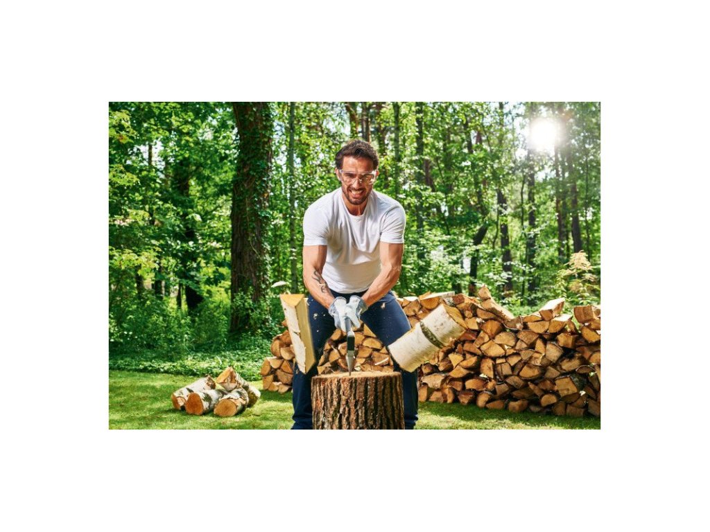 - jedinečný tvar hlavy prispôsobený na štiepanie dreva, vhodne profilovaná rukoväť z kompozitu vystuženého sklenými vláknami, poskytuje tlmenie nárazov