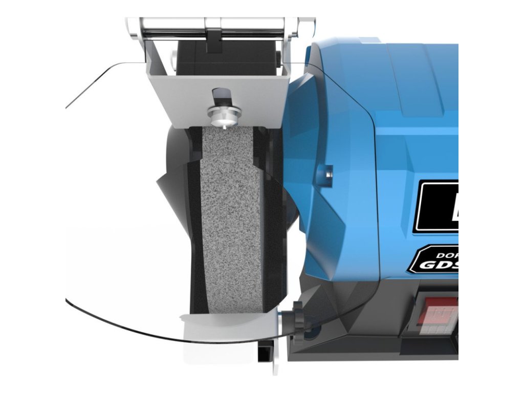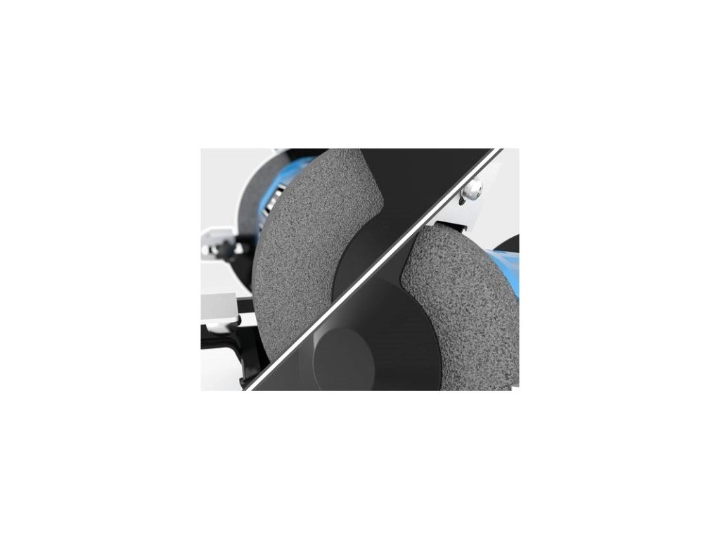 Stolová dvojkotúčová brúska s ochrannými krytmi proti iskrám, stabilná základňa, osi uložené v guľôčkových ložiskách, kondenzátorový motor, chod bez vibrácií. Polohovateľné pracovné opierky, brúsny kotúč na hrubé a jemné brúsenie.
