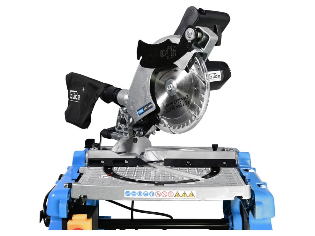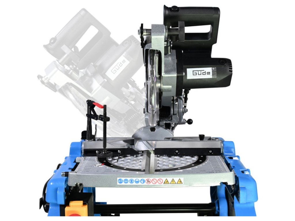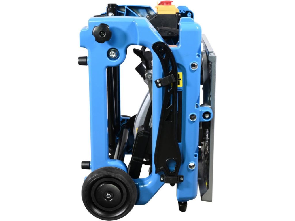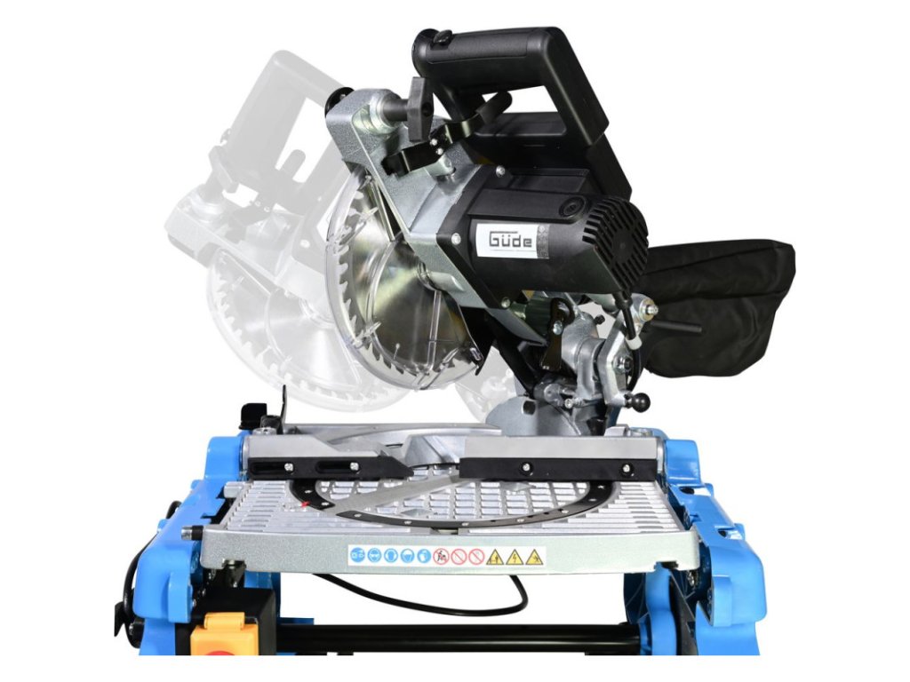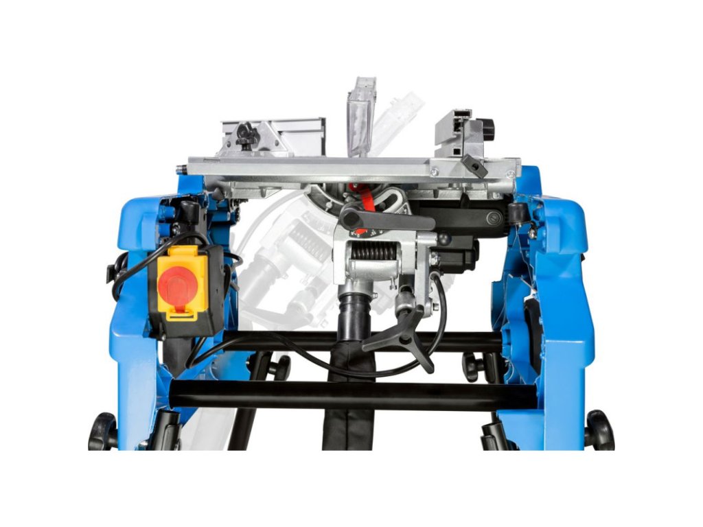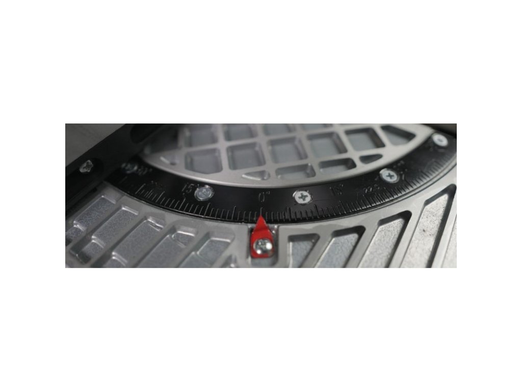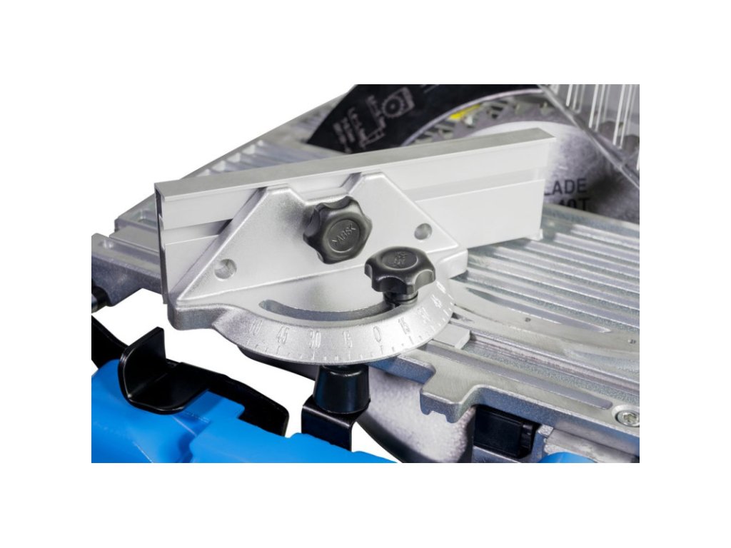 Stolová píla s jednoduchou zmenou na pokosovú pílu pretočením stola do protiľahlej polohy, plynule otočná o 180° pomocou upínacej páky. Otočný stôl vyrobený z tlakovo liateho hliníka, paralelný a úkosový doraz, pripojenie pre odsávací systém, ochranný kryt pílového kotúča. Zberné vrecko na prach, sklopné nohy pre jednoduchú prepravu, pílový kotúč HM.