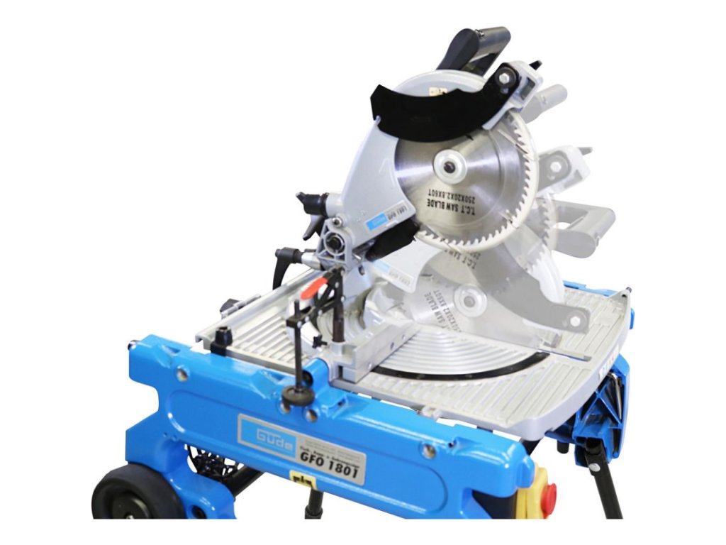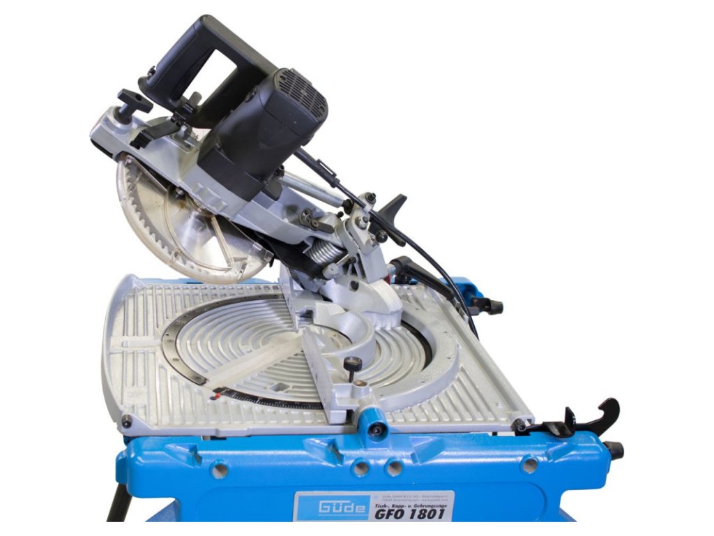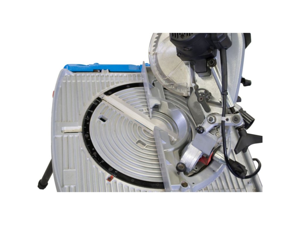 Stolová píla s jednoduchou zmenou na pokosovú pílu pretočením stola do protiľahlej polohy, plynule otočná o 180° pomocou upínacej páky. Otočný stôl vyrobený z tlakovo liateho hliníka, paralelný a úkosový doraz, pripojenie pre odsávací systém, ochranný kryt pílového kotúča. Zberné vrecko na prach, sklopné nohy pre jednoduchú prepravu, pílový kotúč HM.
