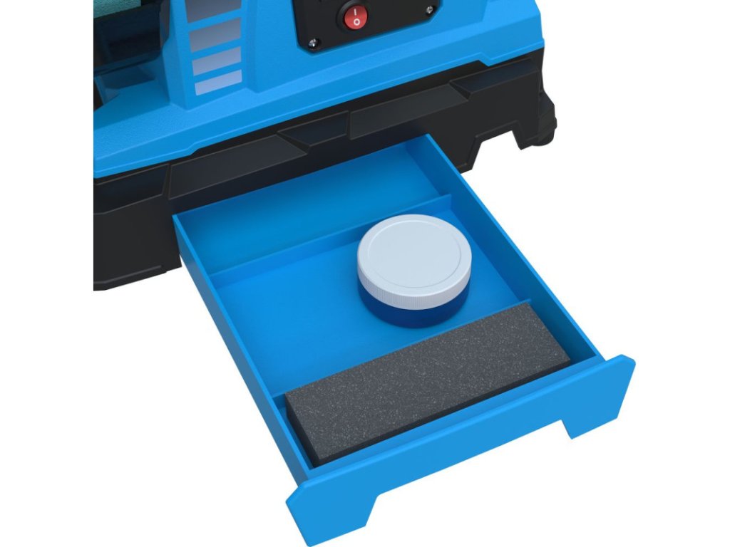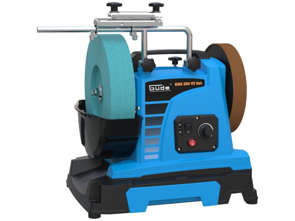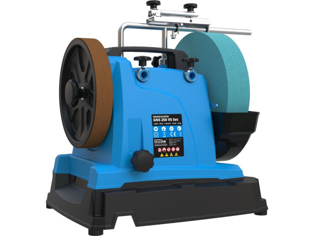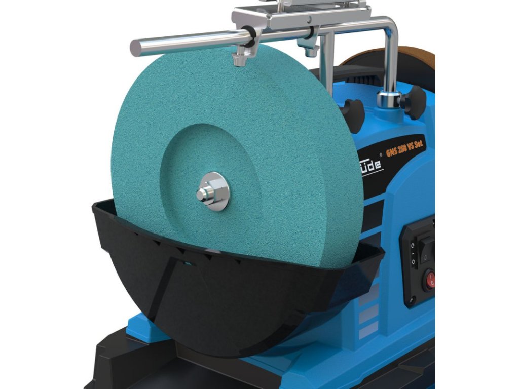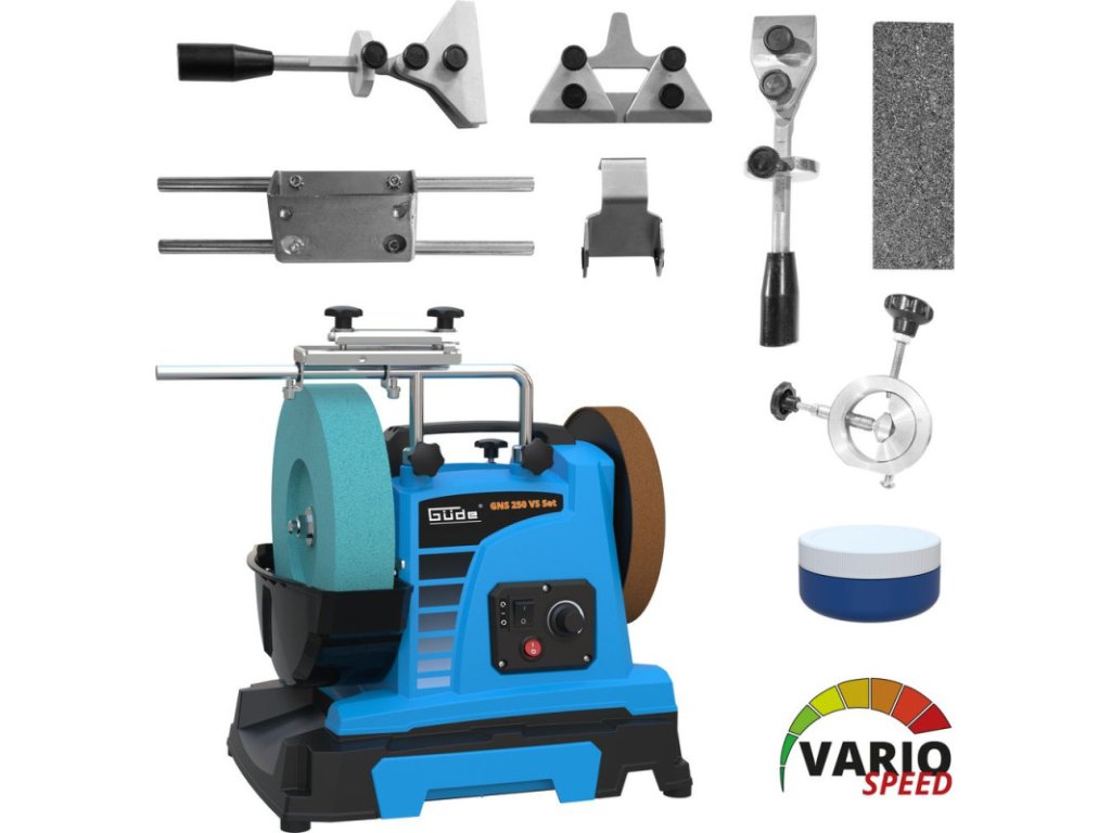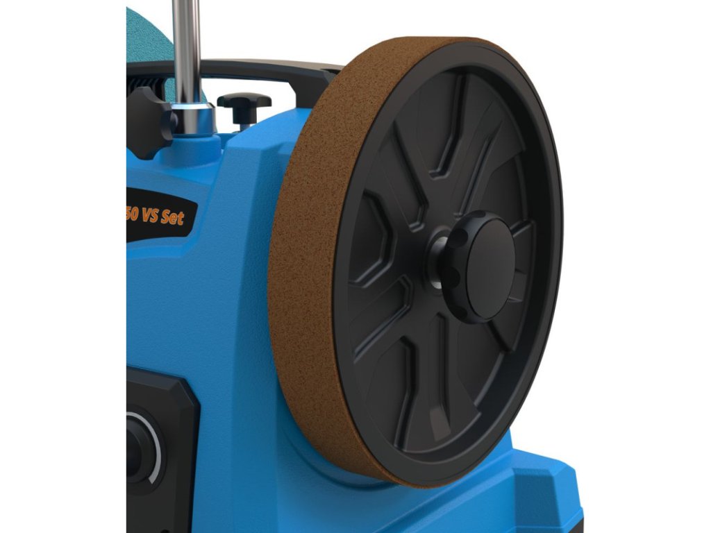Stolová kombinovaná brúska na brúsenie sekier, nožníc, nožov, vrúbkovacieho náradia akéhokoľvek tvaru, rozkolníkov, hoblíkov a podobne. Stabilná základová časť stroja, puzdrá klzných ložísk, brúsny kameň z ušľachtilého korundu, vhodná na nástrojovú oceľ s tvrdosťou viac ako 60 HRC. Indukčný motor, chod bez vibrácií, plynulé nastavenie rýchlosti „Vario Speed“, prestaviteľné dorazy, dva rôzne smery otáčania. Nádrž na vodu s ochranou proti pretečeniu. Prípravok na upevnenie sekery, upevnenie nožníc, upevnenie noža, 2° prípravok na upevnenie nožov, prípravok na upevnenie hoblíka.