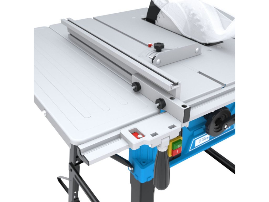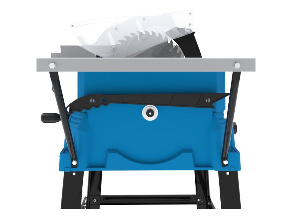 Stolová kotúčová píla s pracovným stolom z oceľového plechu, plastový kryt, podstavec z ocele. Dva rozšírenia, zošikmený doraz, paralelný doraz, posuvná tyč s držiakom, dorazová lišta s milimetrovou stupnicou. Možnosť nastavenia výšky s nastavením zošikmenia pomocou kľuky. Zariadenie na navinutie napájacieho kábla, prípravok na uloženie paralelného dorazu. Pripojenie na odsávacie zariadenie. Vyhotovená podľa najnovších bezpečnostných noriem. Vrátane 1 ks pílového kotúča HM.