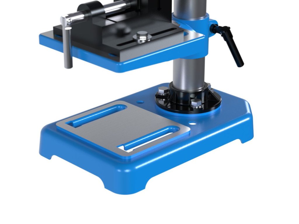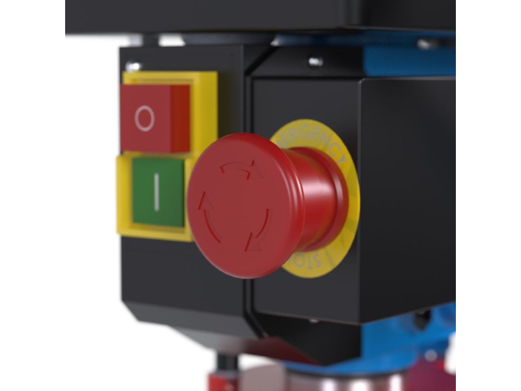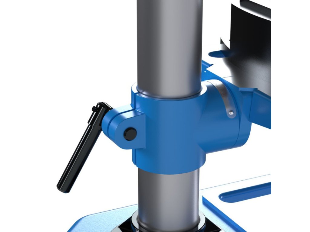 Stolová vŕtačka s pohonom klinovým remeňom, nastavenie rýchlosti pomocou stupňovitej remenice. Systém napínania klinového remeňa. Vŕtacie vreteno uložené v guľôčkových ložiskách. Ozubené skľučovadlo 3 – 16 mm. Kužeľ skľučovadla B16. Veľkosť vŕtacieho stola 162 x 158 mm, vrátane strojného zveráka. Výškovo nastaviteľný vŕtací stôl, otočný o 360° a sklopný o 45°. Polohovací laser, nastaviteľný hĺbkový doraz pre presné vŕtanie.
