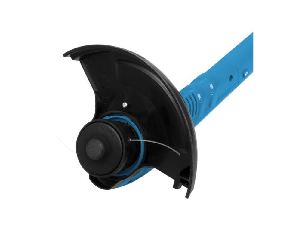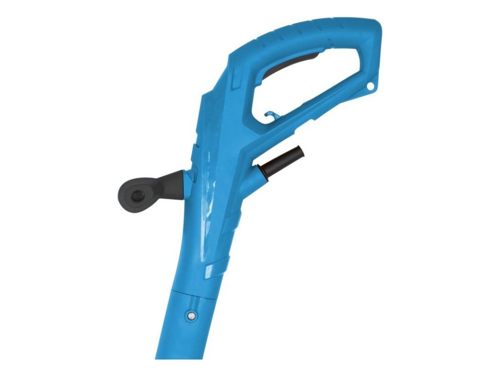 Strunová kosačka vhodná na ľahšie a stredne ťažké vyžínacie práce, rukoväť pre bezpečnú prácu, 2-strunový systém s tlačidlovou nastavovacou automatikou, odľahčenie ťahu kábla.