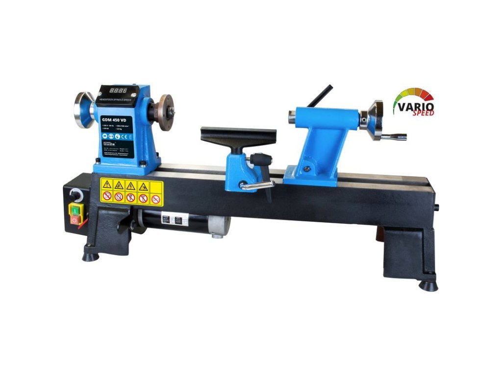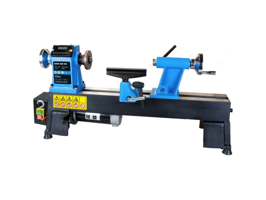 Sústruh na obrábanie dreva s digitálnym displejom, výrobu originálnych tanierov, misiek, svietnikov. Upínacia doska o priemere 80 mm, závit vretena M33x3,5 s vnútorným kužeľom MK2, opierka nástroja 150 mm. Predĺženie lôžka sústruhu 550 nie je súčasťou balenia, možné doobjednať (kód tovaru: 11433).