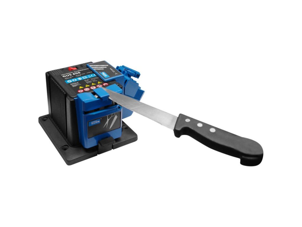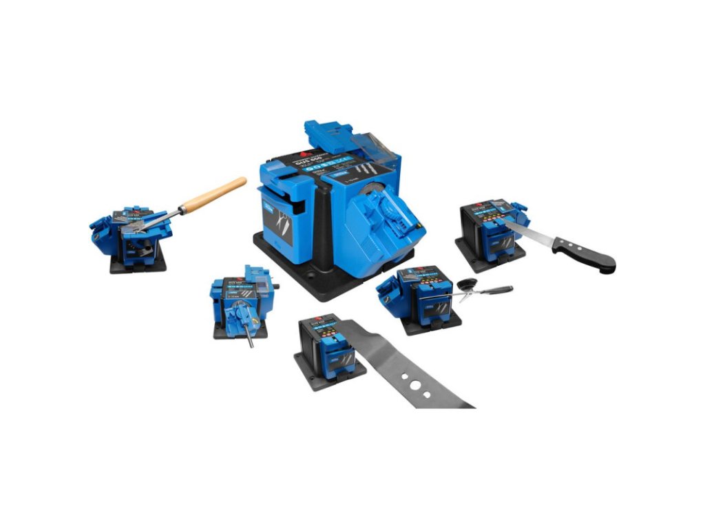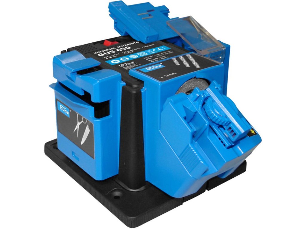 Viacúčelová ostrička s integrovaným zariadením na brúsenie vrtákov, na ostrenie/brúsenie kuchynských nožov a nožníc, záhradníckych nožníc, špachtlí, skrutkovačov, dlát, hobľovacích nožov, sekier a podobne. Brúsny kameň pokrytý diamantom.