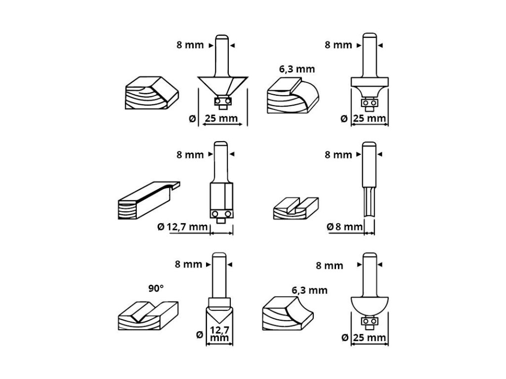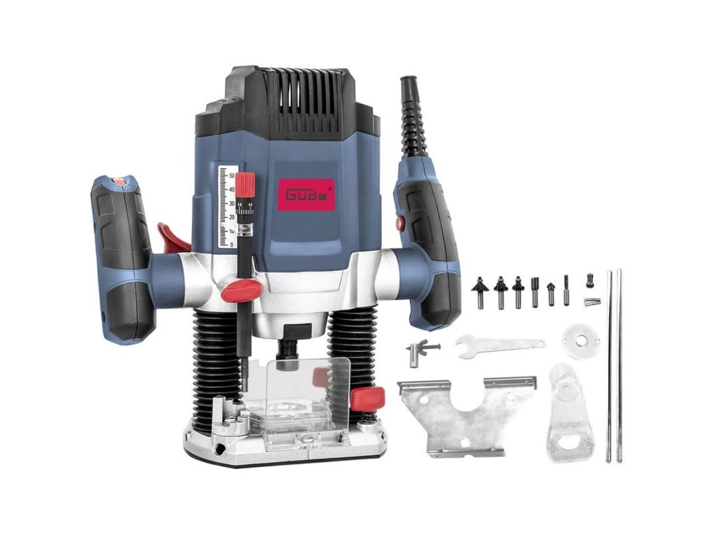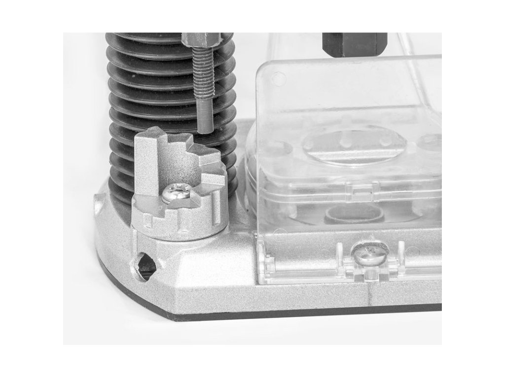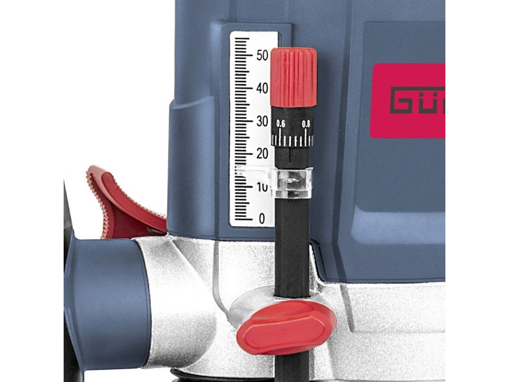 Vrchná fréza na opracovanie rôznych druhov dreva s plynulou reguláciou otáčok pre prácu špecifickú pre daný materiál. Ergonomické rukoväte s mäkkým úchopom pre bezpečnú prácu. Dvojstupňové vedenie pre presné frézovanie. Jemné nastavenie hĺbky frézovania. Sedem možností nastavenia revolverového hĺbkového dorazu. Možnosť zaistenia hĺbky frézovania pre jednoduchú prácu vo zvolenej výške. Bezpečnostný vypínač zabraňuje neželanému zapnutiu frézy. Možnosť zaistenia vretena pre jednoduchú a rýchlu výmenu frézy. Priehľadný ochranný kryt. Stojan frézy s plastovou podložkou pre jednoduché posúvanie a ochranu pracovnej plochy. Prípojka pre prídavný odsávací systém, paralelný doraz, klieštiny (6/8 mm), kružidlo, kopírovacia objímka, kľúč, 6 frézok.