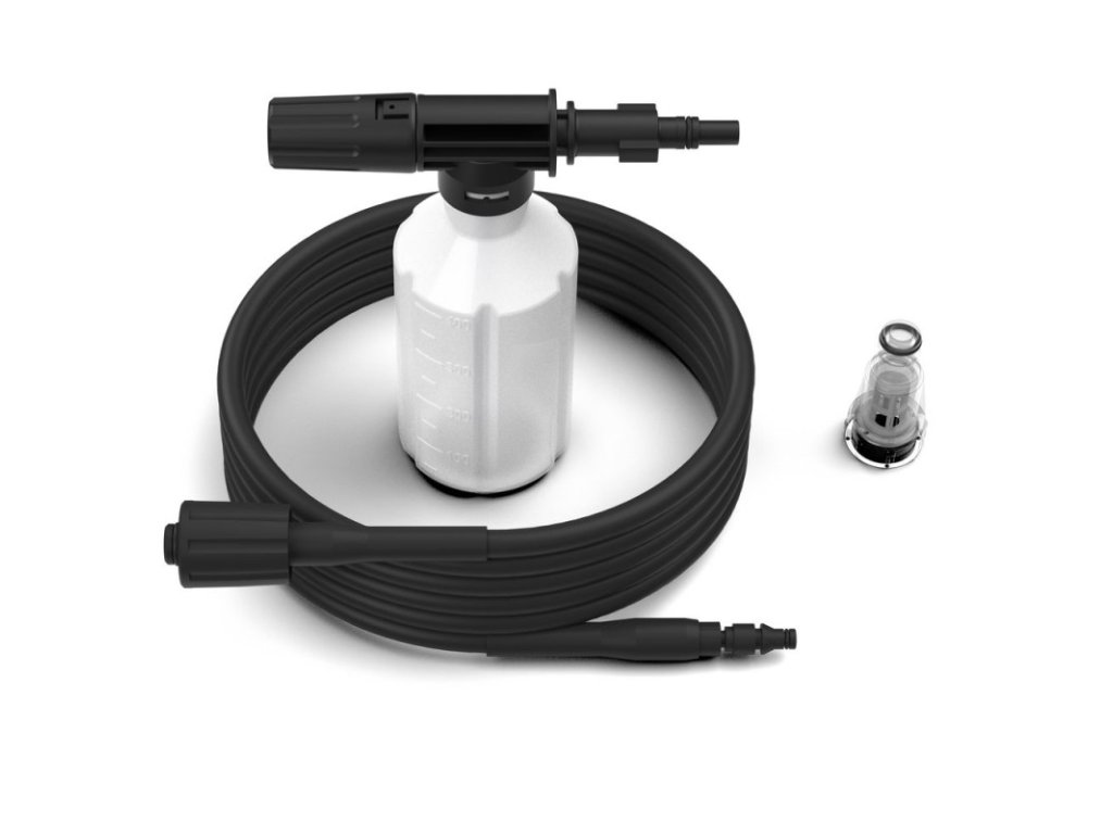 Vysokotlakový čistič so systémom automatického zastavenia pre jednoduchú obsluhu. Výkonné hliníkové čerpadlo. Praktické držiaky na oboch stranách vysokotlakového čističa pre príslušenstvo, vysokotlakovú hadicu a prípojný kábel. V balení sa nachádza vysokotlaková hadica 5-metrová, vysokotlaková pištoľ s postrekovacou tyčkou, tryska Vario, dýza na nečistoty, nádoba na čistiaci prostriedok.