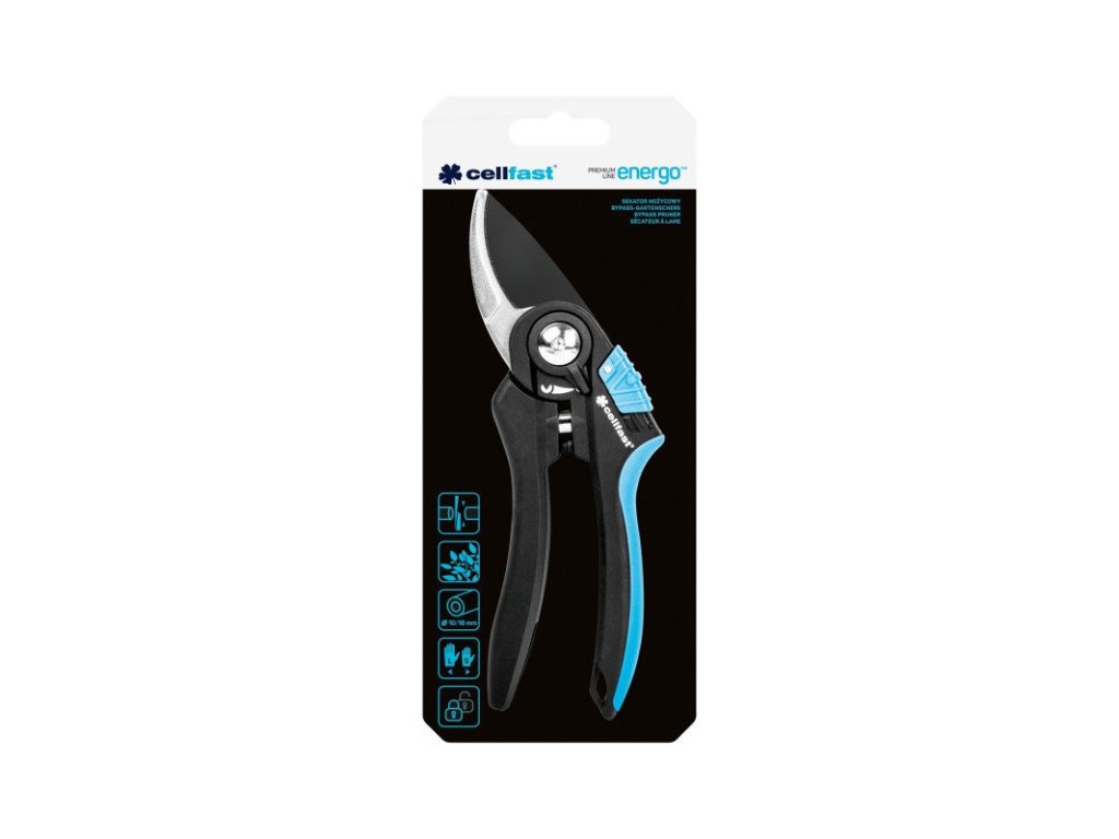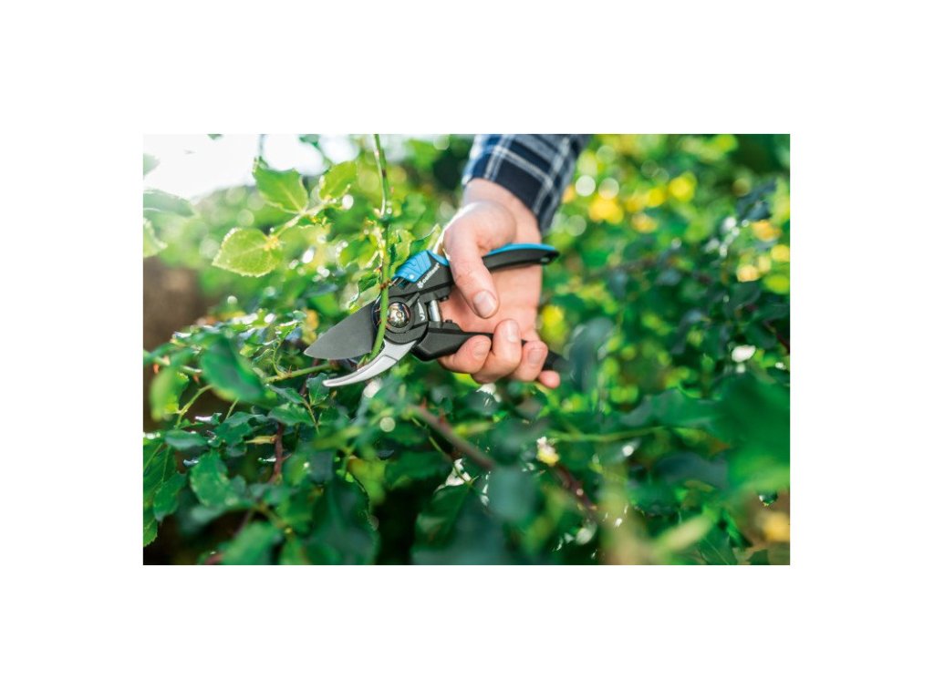 - ergonomický, jednoručný nožnicový prerezávač s nastavením, ktoré umožňuje prispôsobiť otvor priemeru konára a ruke užívateľa