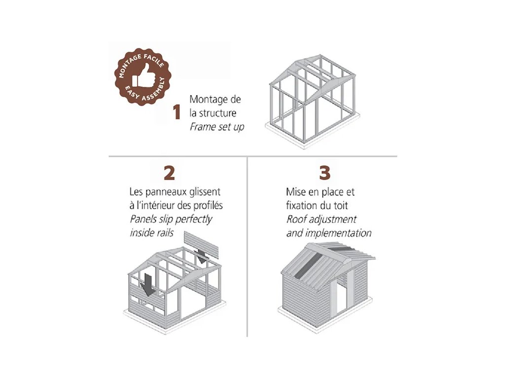 Domček je vyrobený z kvalitnej žiaruvzdornej pozinkovanej ocele, čo zaručuje jeho maximálnu životnosť a bezúdržbovosť.