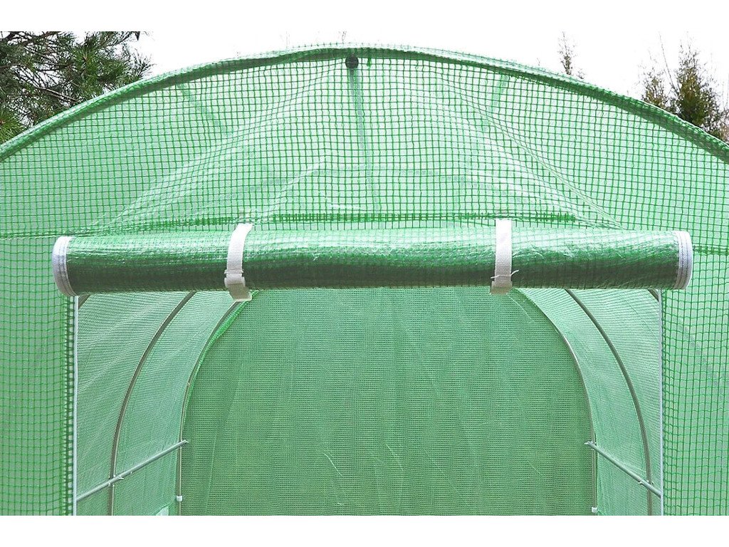 Tunel s dĺžkou 4 m a výškou 2 m vám umožňuje voľný pohyb. Má 6 uzavretých vetracích okien so sieťkami proti hmyzu, ktoré umožňujú správnu cirkuláciu a reguláciu teploty a vlhkosti vzduchu. Široké rolovacie dvere so západkami zvyšujú funkčnosť tunela. Vo vnútri sú v hornej časti rámu namontované dve priečky, ktoré zabezpečia stabilitu a umožnia uviazať šnúrky na popínavé rastliny.