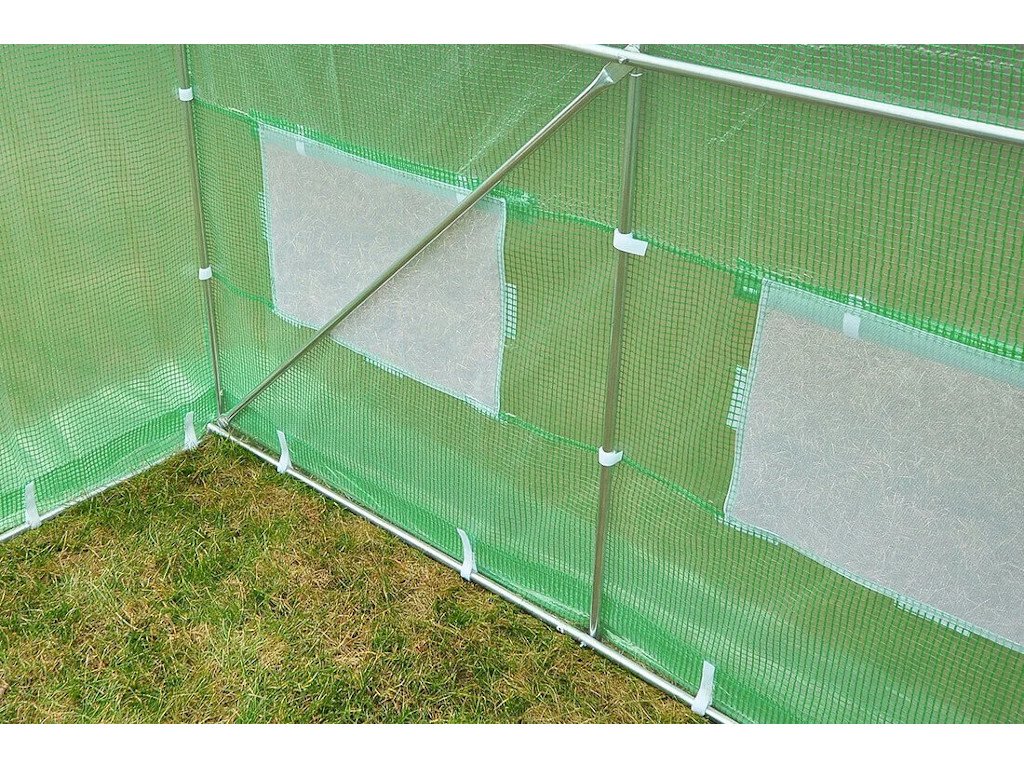 Tunel s dĺžkou 3 m a výškou 2 m vám umožňuje voľný pohyb. Má 6 uzavretých vetracích okien so sieťkami proti hmyzu, ktoré umožňujú správnu cirkuláciu a reguláciu teploty a vlhkosti vzduchu. Široké rolovacie dvere so západkami zvyšujú funkčnosť tunela. Vo vnútri sú v hornej časti rámu namontované dve priečky, ktoré zabezpečia stabilitu a umožnia uviazať šnúrky na popínavé rastliny.
