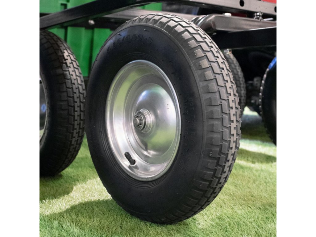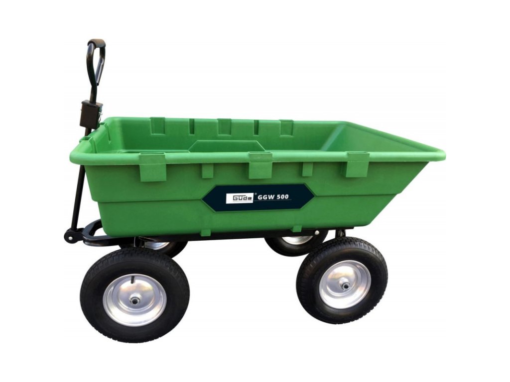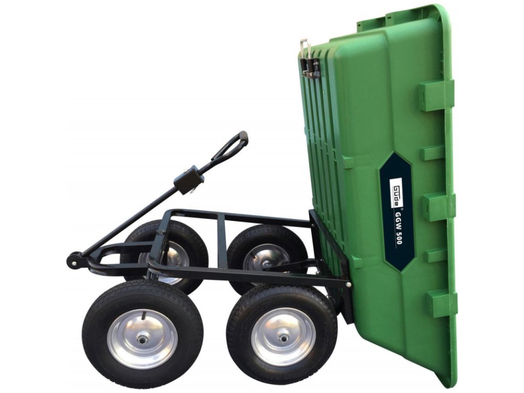Prepravný vozík pre využitie ako ručný vozík aj ako prívesný vozík. Robustný oceľový rám, veľké vzduchové kolesá s guľôčkovými ložiskami. Funkcia vyklápania, oj s ťažným okom pre uchytenie napríklad ku traktorovej kosačke.